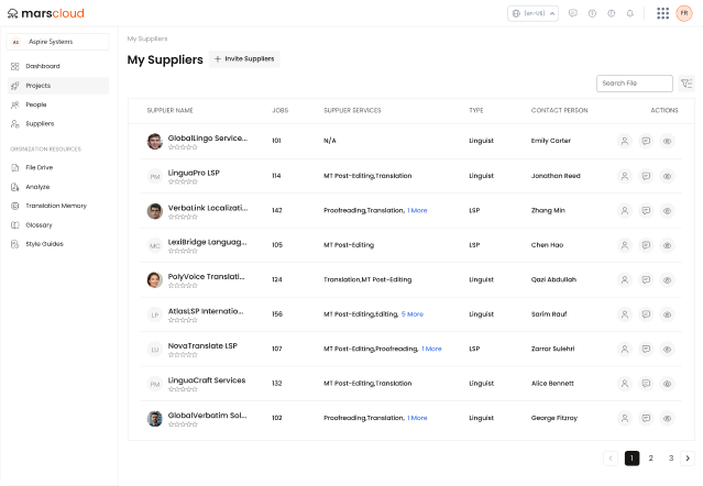 Get Started!Bring clients, project managers, and LSPs together under one connected workspace. With built-in MarsChat and shared project dashboards, every stakeholder stays aligned in real time. Share feedback instantly, view every change as it happens, and keep communication clear, helping your team move faster and stay in sync.