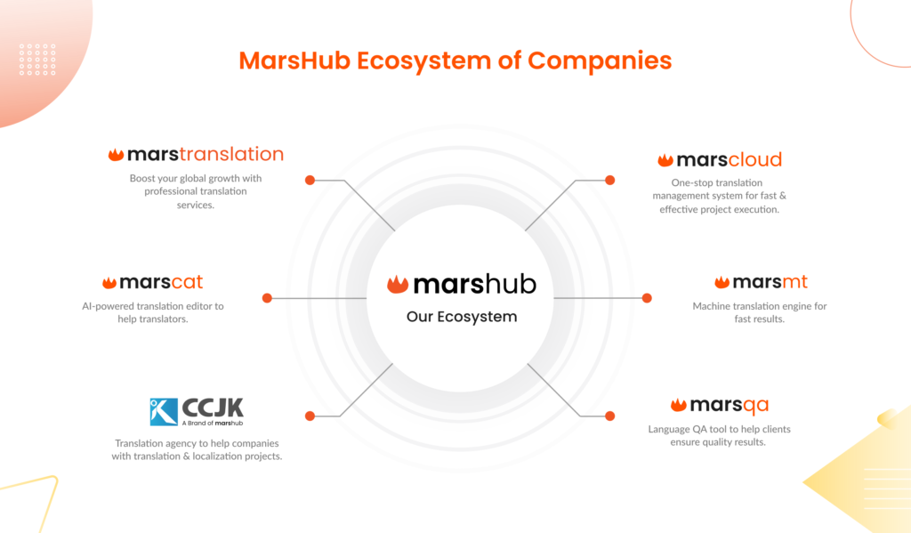 MarsHub’s continuous focus on technological innovation has also hugely contributed to our credibility in the realm of translation tools. We have built MarsCat (CAT tool) and MarsCloud (TMS) tools to enable global enterprises and translators to seamlessly go about their translation operations. All our tools are designed meticulously to allow enterprise and LSPs scale in foreign markets through optimizing translation processes, enhancing productivity, and streamlining everyday translation workflows.
